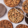 Delgadas y crocantes láminas de praliné (caramelo crujiente de almendras y nueces), cubiertas con una fina capa de chocolate semi amargo.